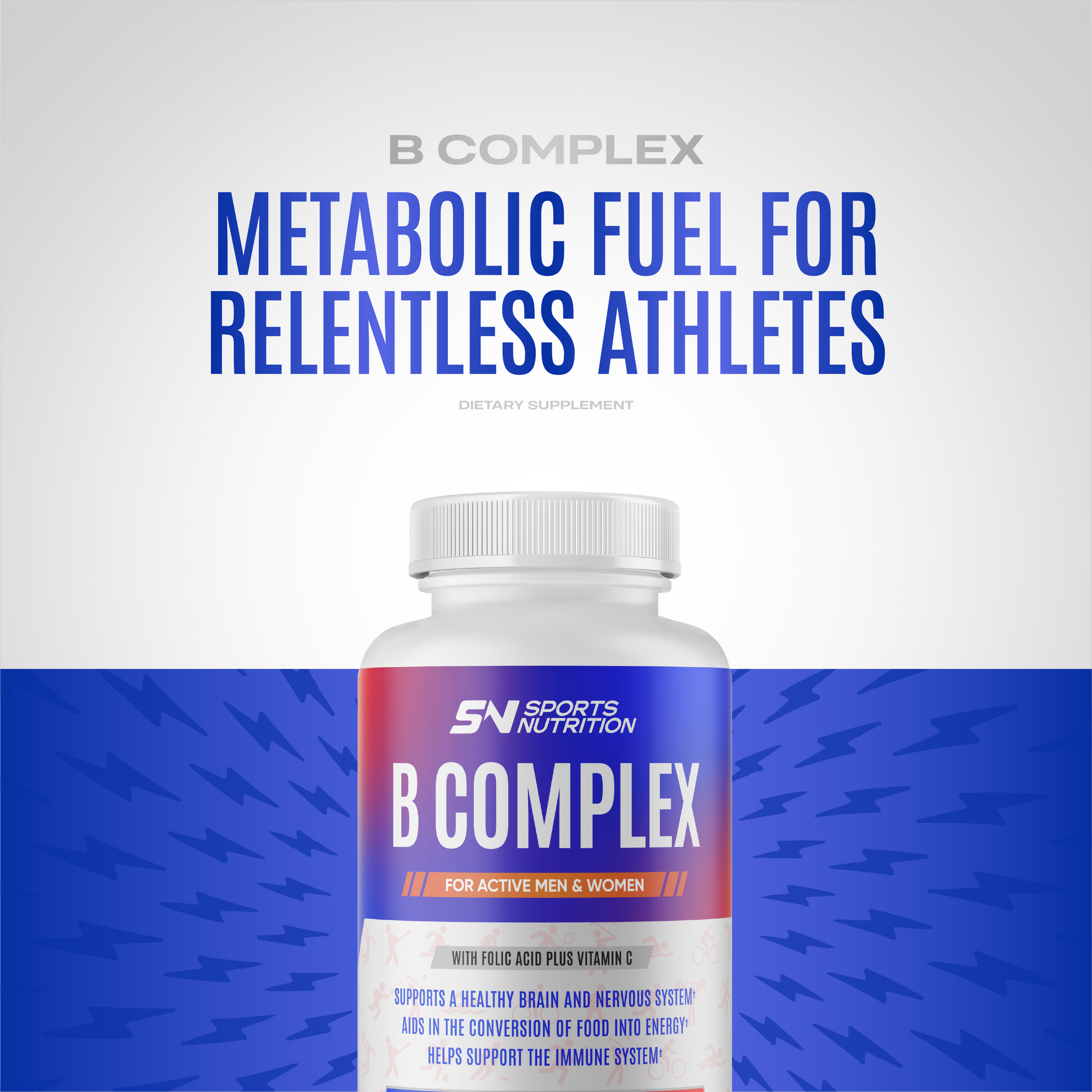 SPORTS NUTRITION B-COMPLEX for Active Men & Women, 60 Capsules, Includes all B-Vitamins, with Vitamin C & Folic Acid