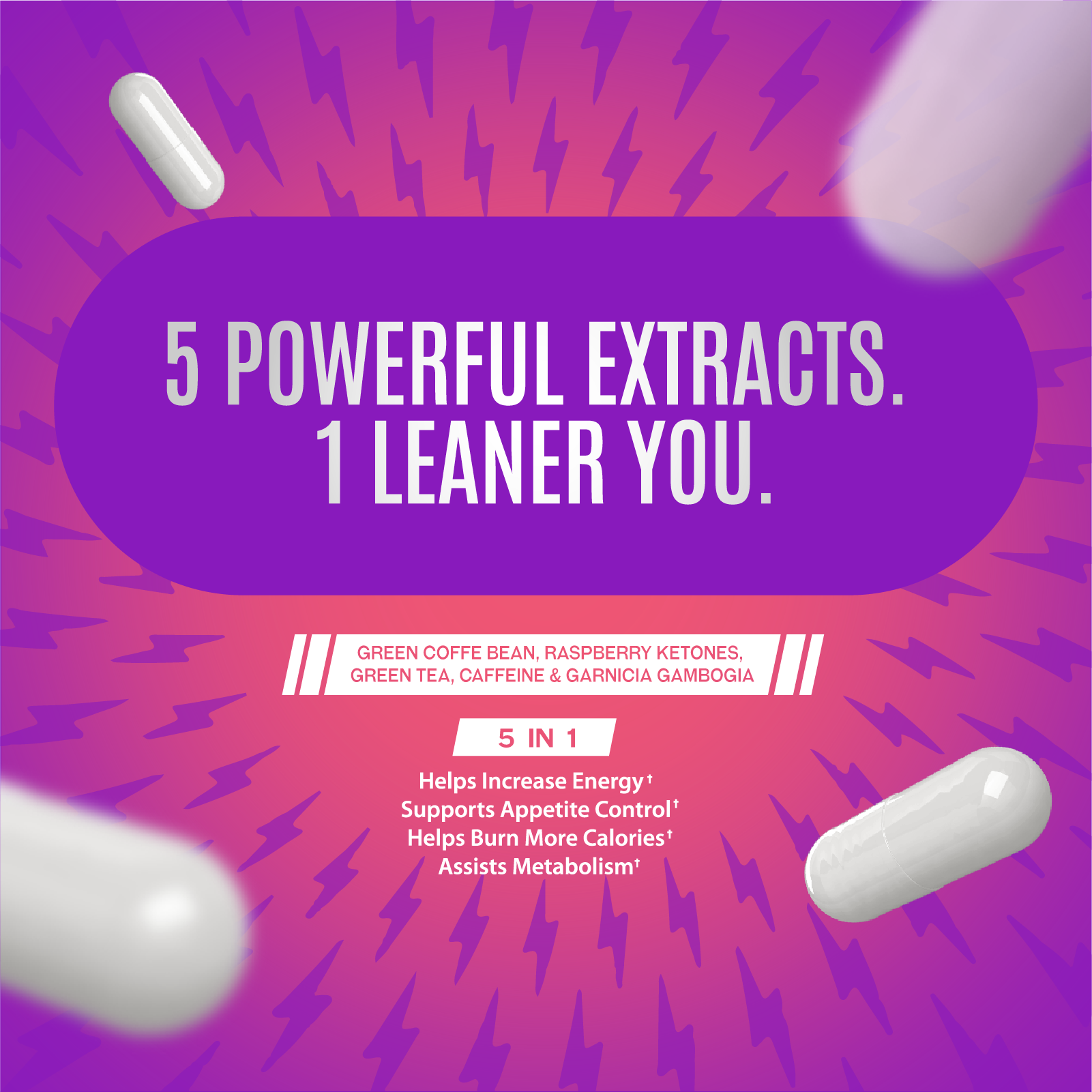 SPORTS NUTRITION KETO 5 in 1 Powerful Mix of Green Coffee Bean + Raspberry Ketones + Green Tea + Caffeine + Garcinia Gambogia, 60 Capsules