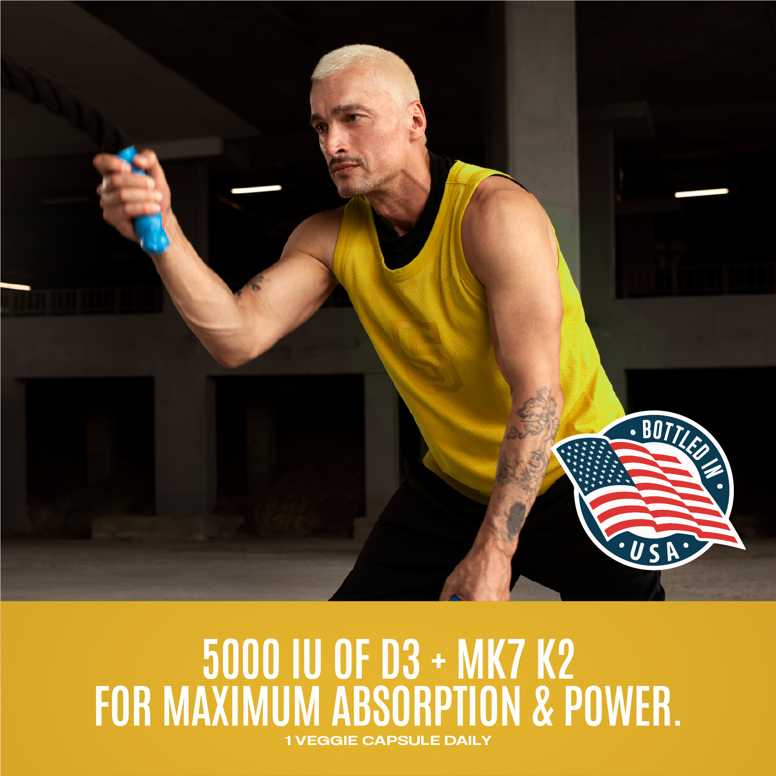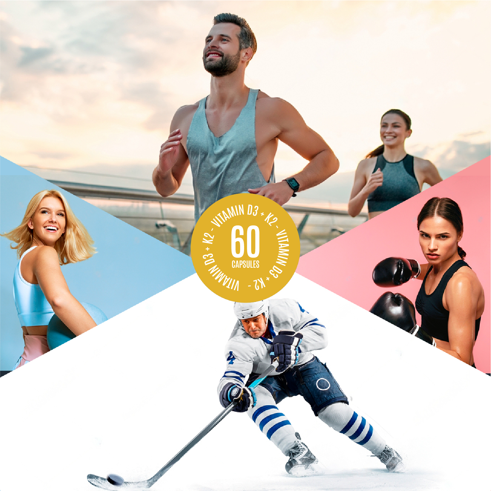 STRONG BONES & MUSCLES If you are an athlete or play sports frequently you need strong bones & healthy muscles. Known as the "Sunshine Vitamin," Vitamin D3 helps metabolize calcium into your bones and muscles. Added Vitamin K2 helps ensure that calcium gets deposited in your bones where it's needed, and protects arteries from calcification.